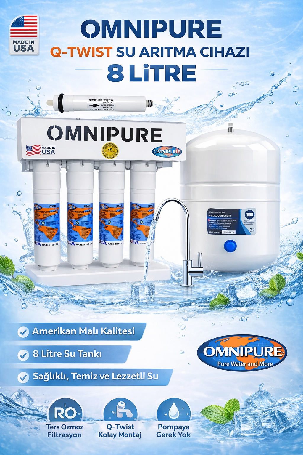 Omnipure filtre teknolojisi, NSF standartlarına uygun olarak üretilmekte olup yüksek filtrasyon verimliliği sunar. Sistem içerisinde genellikle şu aşamalar bulunur: